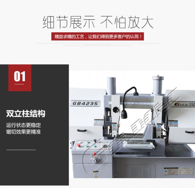 3、由于其切削刀具,采用进口薄片的双金属带锯条,因此,切口窄,耗材少,所需动力小,是大、中型企、事业单位切割大型钢胚、大型模具钢胚的一种具有显节材又节能的高效切割刀具。